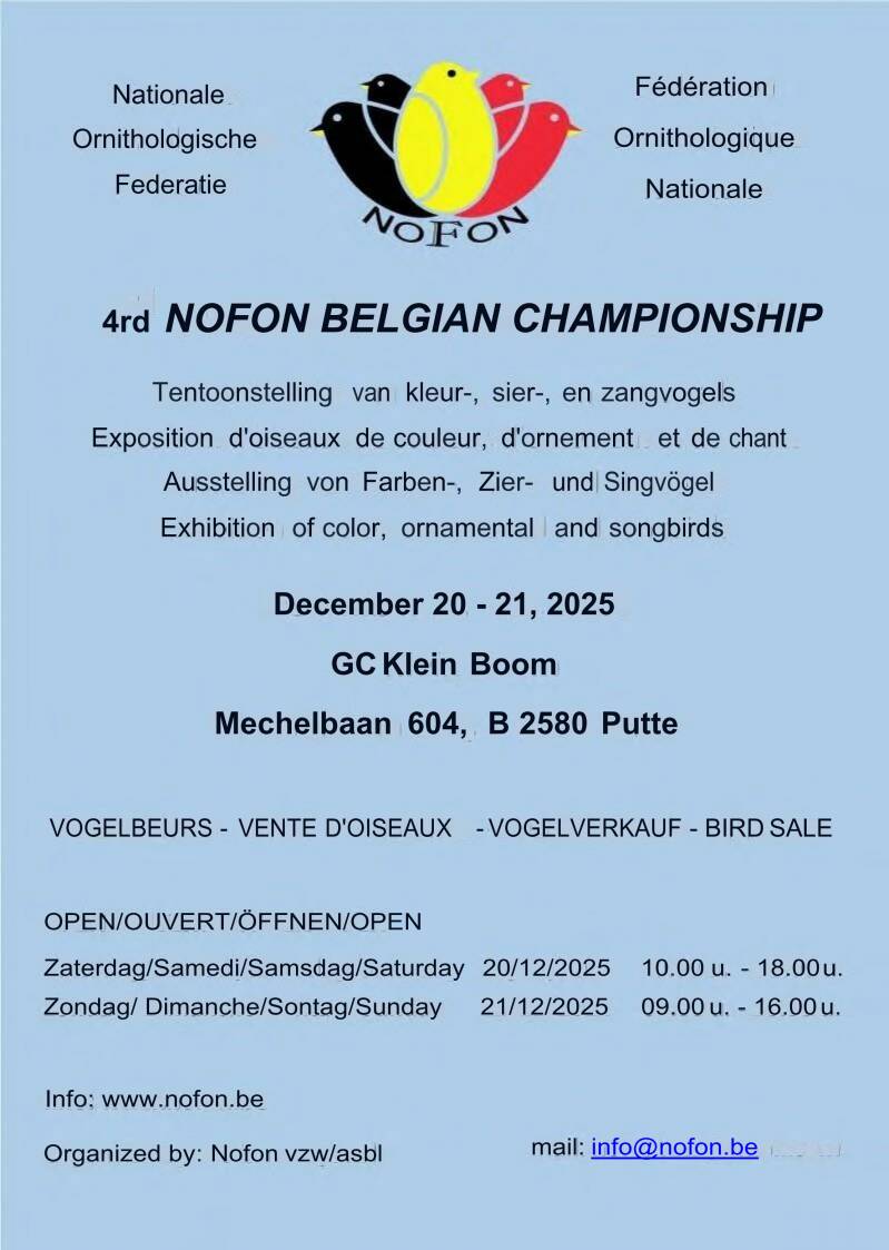 Op 20/21 December 2025 gaat het 4de NOFON Belgian Championship door in GC Klein Boom, Mechelbaan 604, 2580 – Putte.